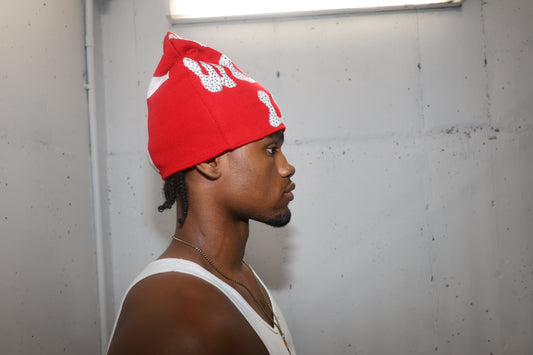 RHINESTONE WEWOKEUP BEANIE (RED)